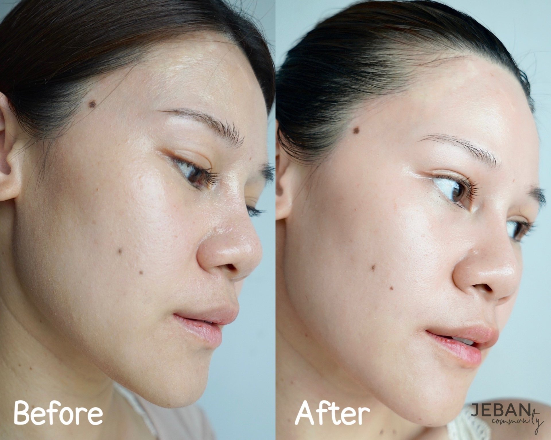 ภาพก่อนใช้จะสังเกตว่าผิวไม่เรียบเนียน หยาบกร้านและแห้งค่ะ มีกระและจุดด่างดำเล็กๆบริเวณแก้ม หลังจากใช้ เซรั่มคอร์ริเดล รู้สึกว่าผิวนุ่มขึ้น จากการที่เราได้สัมผัสผิวอยู่ทุกวัน รู้เลยว่าผิวละเอียดขึ้นค่ะ สำหรับเราชอบนะคะ ตามมาก็คือความฉ่ำของผิวหน้า เริ่มมีความออร่าขึ้นมาทันที กะว่าจะใช้ต่อเนื่องยาวๆไปเลยค่ะ